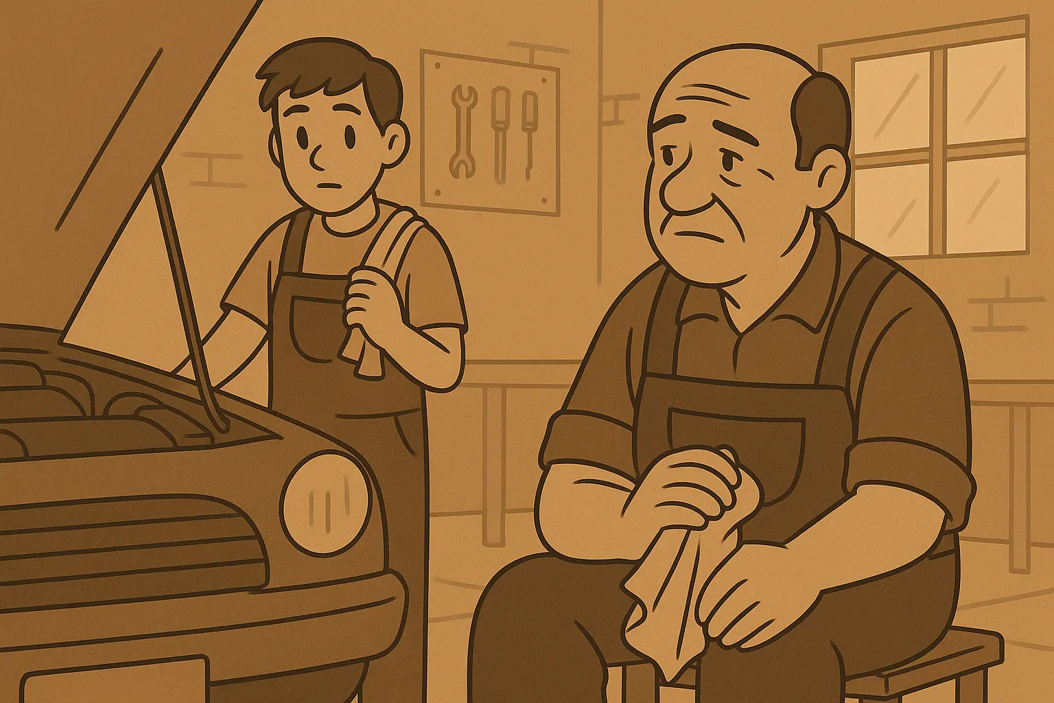 Una tarde, mientras reparaba un auto, un joven aprendiz le dijo: